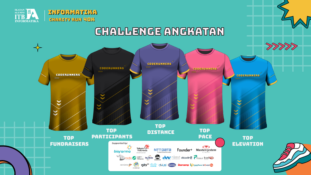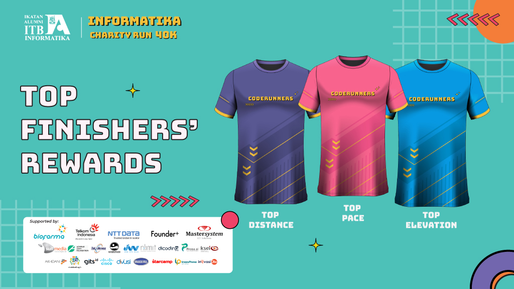 Rewards di atas hanya berlaku untuk komunitas Alumni dan Mahasiswa IF/STI ITB. Rewards jersey eksklusif akan diberikan kepada tim yang dianggap paling merepresentasikan angkatan pada masing-masing challenge.